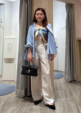 痩せ型の自分にワイドパンツは似合わないと思っていたのですが、店頭でスタッフさんに薦められて試着したらとても綺麗なシルエットで脚も長く見えて感動しました。
