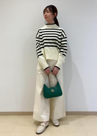 ハイウエストなのでショート丈のニットやトップスを合わせていただくのがバランスが取れておすすめです。