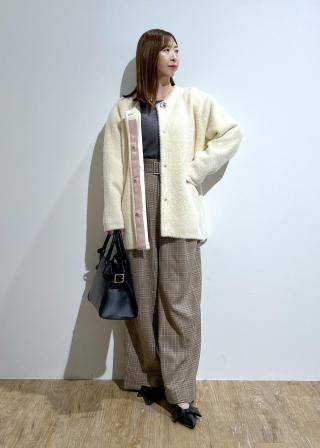 シルエットが綺麗なパンツなので、コンパクトシルエットのTOPSともバランスよく着用いただけます。