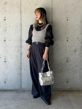 シルエットが綺麗なパンツなので、コンパクトシルエットのTOPSともバランスよく着用いただけます。