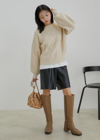 ニットトップス×足元はロングブーツでボリューム感をプラスするのもおすすめ◎