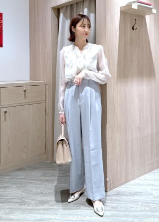 ウエストのフロント2タックのゆとり分と中心から流れるセンタープレスがすっきりと細見えするシルエットのワイドスラックスパンツです。