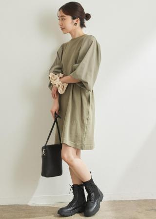 レースアップのブーツがシンプルなコーデのアクセントになります。