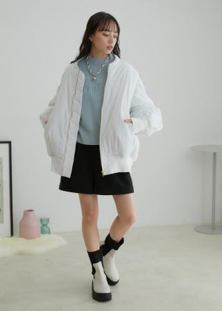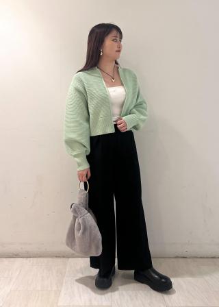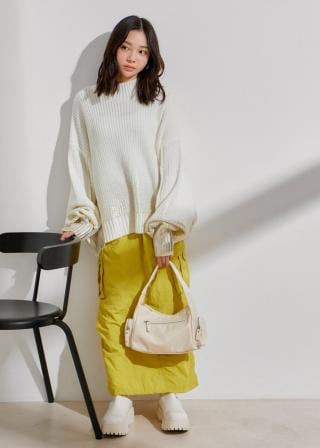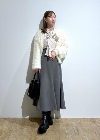 ボリュームソールと脚に沿う設計のニットで、ミニ丈のボトムとのバランスも取りやすいです。