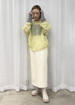 ボリュームソールと脚に沿う設計のニットで、ミニ丈のボトムとのバランスも取りやすいです。