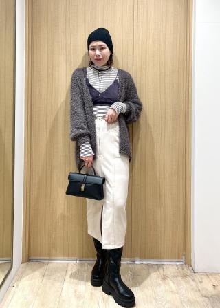 ・厚底ソールは脚が長く見えるヒールアップ型を採用し、足元に重さを出せつつ少し抜け感を出してカジュアル過ぎない見え方に。