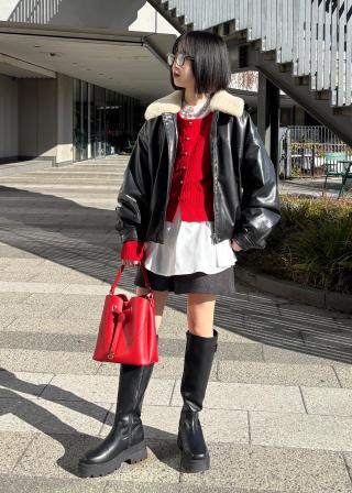 ・厚底ソールは脚が長く見えるヒールアップ型を採用し、足元に重さを出せつつ少し抜け感を出してカジュアル過ぎない見え方に。