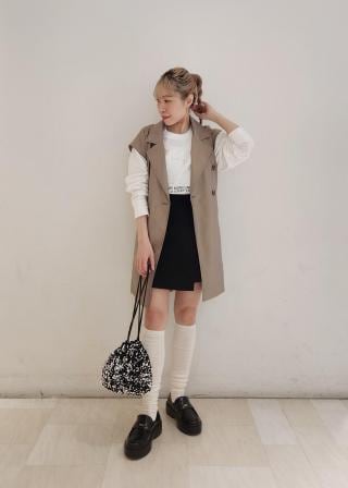パンツにはもちろん、ミニスカートとハイソックスのコーディネートへの合わせもおすすめです。