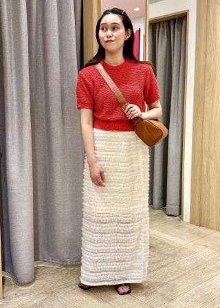 ・サテン生地なので、デニムなどに合わせることでこなれたバランスで履いて頂けます。