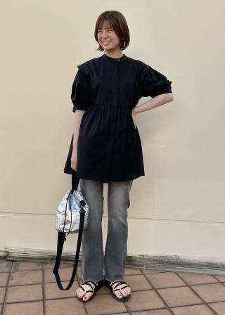 どんなスタイリングにも合わせやすいブラックベースで、ゴールドのメタリックレザーがアクセントに。