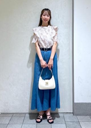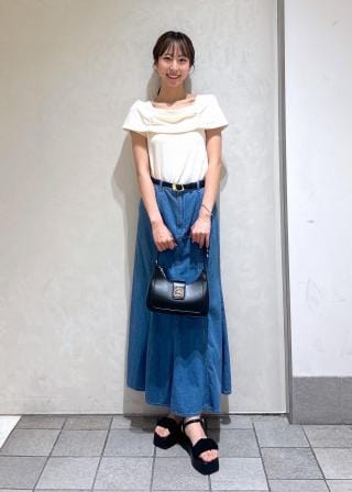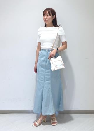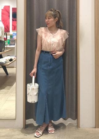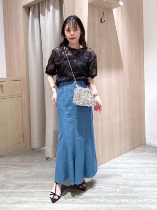 カジュアルな印象のデニム素材なので、ブラウスやコンパクトニットなど女性らしいアイテムと合わせてスタイリングして頂くのがおすすめ!
