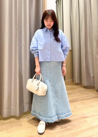 デニムスカートって使い勝手よく、カラーもカタチもなんとなく定番。マチ部分が配色になったデザインとは出会いがありましたが、こちらのジャガード&カラーには一目でした!長めの着丈も高身長の私にバッチリ!裾は切りっぱなしフリンジがgood!生地が柔らかくラフに着ることが出来る為長時間のドライブ旅行で大活躍しました。※セットアップしてみたかったです!ビスチェ在庫ナシ⤵︎出会うのが遅かったのは本当に残念です。