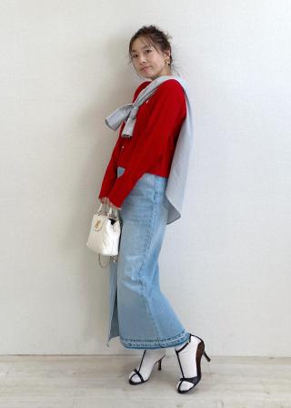 シーズンレスで履けるデニムスカート。冬ニット合わせから春先まで大活躍間違いなし!