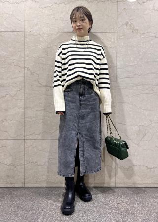 今季おすすめのケミカルウォッシュをブラックでこなす事で、秋冬のダークカラーを簡単に取り入れられるようにしています。
