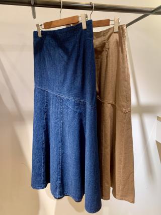 デニムとツイル生地を使用したマーメイドフレアスカートです。