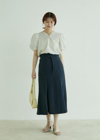 裾にかけて切替なしの流れるようなラインにし、どんなデザインのトップスとも合わせやすいデザインのスカート。