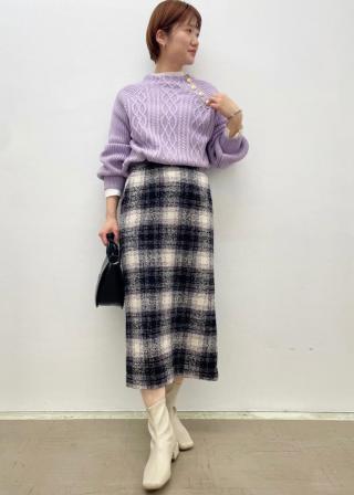ニットやパール釦付きトップスなどと合わせたキレイめカジュアルなコーディネートがおすすめです。