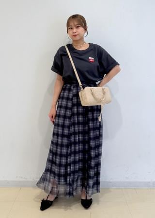 オーバーTをアウトしても、コンパクトTをインしたスタイルもおすすめ。夏のコーディネートに、新しさをプラスしたい気持ちにピッタリなスカートです。