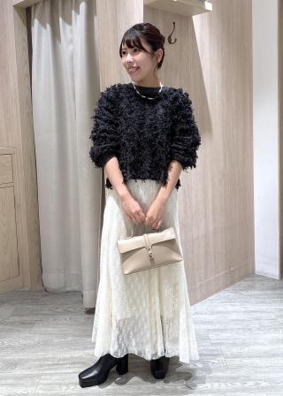 レース編みがとっても素敵なスカート!これはリアルバイしたい。オチ感のある素材感なので広がりすぎないフレアデザイン。