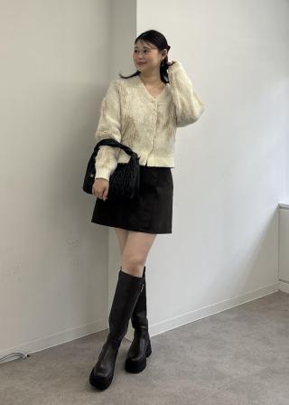 ・台形型ミニスカートでスタイリングにメリハリを持たせます。