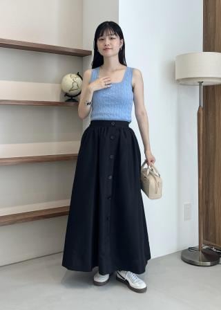 Tシャツやブラウスはもちろん、ざっくりニットやタートルを合わせて秋冬コーデにも◎シンプルなデザインなので、柄物やボリュームのあるトップスとの相性も抜群です。どんな骨格タイプにもフィットしやすく、腰やヒップラインをさりげなくカバーしてくれます。