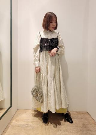 展示会でも好評だったフリルが着いたスパンコールビスチェがシンプルなトップスでもトレンド感出してくれるアイテムです◎