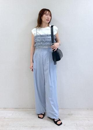 シアー感のあるフリルで夏でも軽く見えます