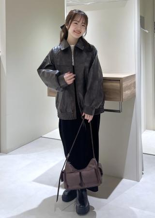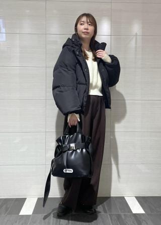 ベージュモデル身長:164cm、骨格:ナチュラルとストレートのミックス 着用サイズ:F