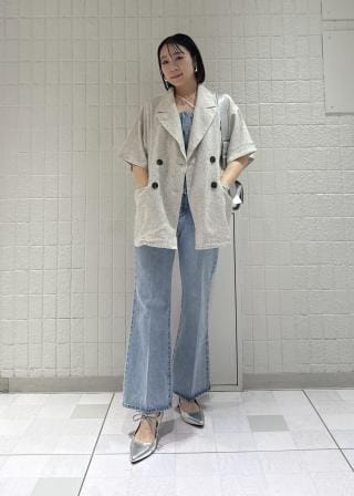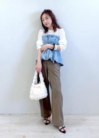 スタンダードなトップスにプラスオンで合わせ、ジャケットなどマニッシュなアイテムとスタイリングして頂くのがおすすめです。