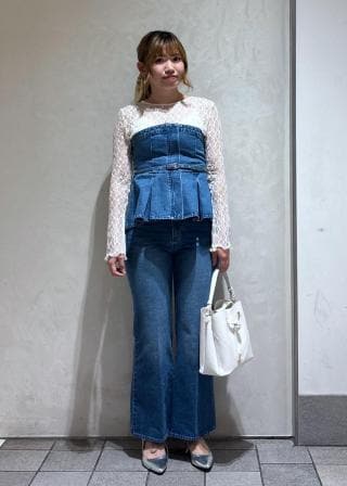 デニムフレアベアトップ/洗える・セットアップ対応