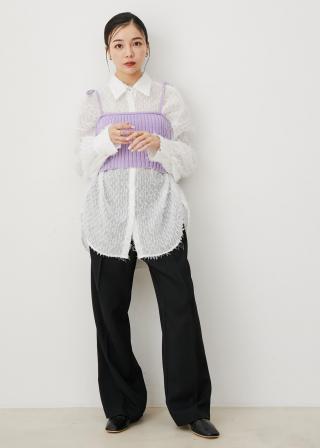 マンネリ感のあるTシャツスタイルやブラウス・シャツスタイルの上にオンしたり、インしたり、華やぎのあるスタイリングになるビスチェです。