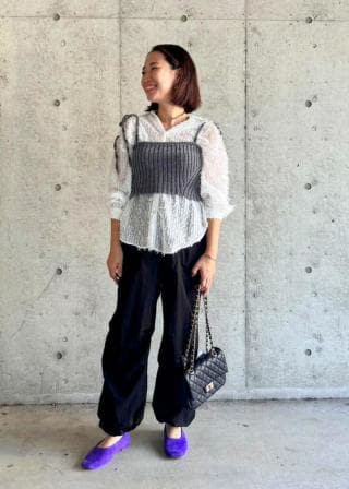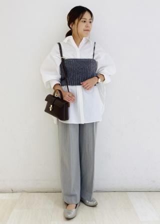 カットソーにONしたカジュアルスタイルから、ブラウスやシャツと合わせたキレイめスタイルにもマッチします。