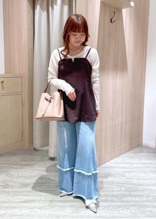 フレアースリーブのレースプルオーバーやシンプルなシャツなどを合わせて、ボトムに同素材のウーリッシュワイドスラックス(品番:BVS65100)でキレイめなスタイルがおすすめ。カジュアルにデニムを合わせたり、色々な組み合わせにチャレンジしても◎