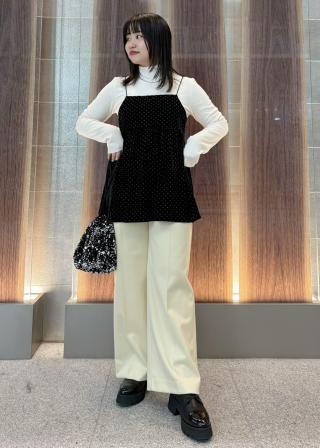 今年注目素材のベロアにラメドットのプリントを施したキャミソールです。