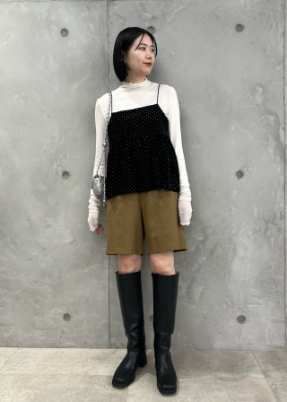 今年注目素材のベロアにラメドットのプリントを施したキャミソールです。