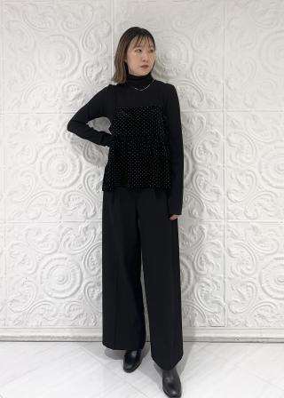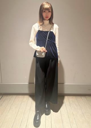 着用サイズ:(ブラック)ワイドパンツ合わせ/FT、デニム合わせ/F (ネイビー)インナー合わせ/FT、カーディガン合わせ/F