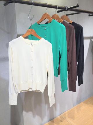 さらっとキレイな表面感にいろいろなデザインのキラッと目を引く可愛い釦がポイントのカーディガンです。