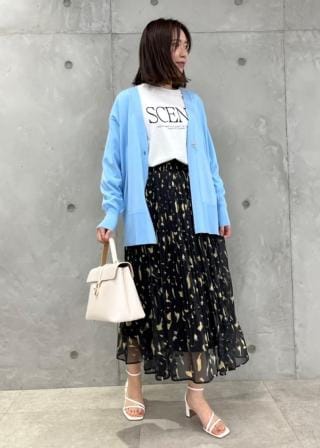 ルーズ過ぎず、程よいシルエットで、ヒップがしっかり隠れる丈感のフェミニンなカーディガンです。