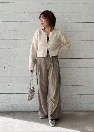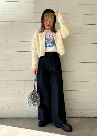 ショート丈なのでハイウエストのワイドパンツ合わせや、シンプルにデニムパンツと合わせてただけで可愛く着こなせます。