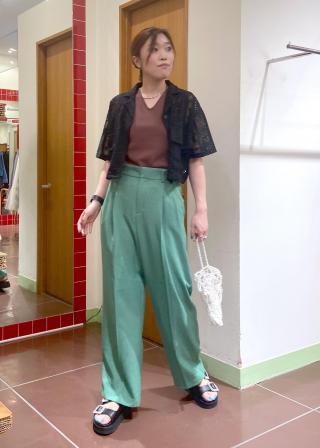 ・クロシェ編みが甘すぎず、幅広いボトムとも相性◎