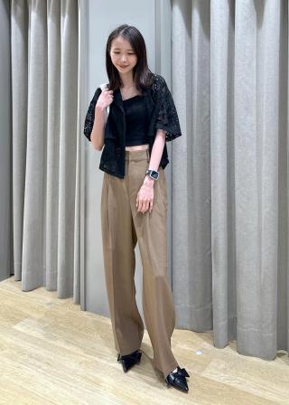 ・ゆったりシルエットでトレンド感のある丈感。腰位置も高く見え、スタイルアップも叶う1枚。