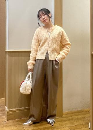 リボンヤーンの毛足感が女性らしさを引き立ててくれる、フェミニンなニットカーディガン。