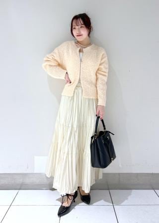 また、今年はカーディガンをプルオーバー使いで締めるスタイリングも◎