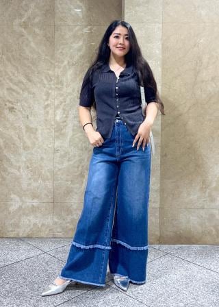 体に程よく沿うシルエットなので、ワイドなボトムやAラインスカートともバランス良く着用していただけます。ボリュームのあるパンツでカジュアルに着崩したり、スカートでキレイめにまとめたりと、旬なファッションが楽しめます。