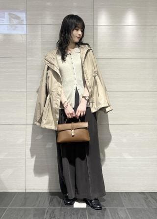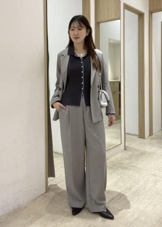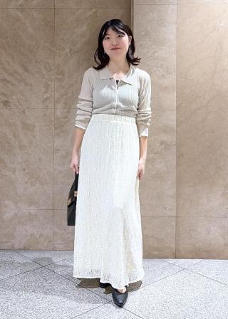 ・程よく身体に沿うシルエットで、女性らしい抜け感のあるスタイリングが完成。