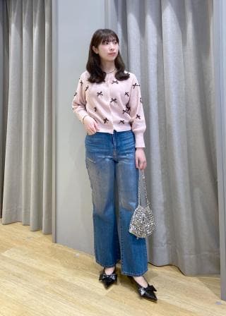 全体にリボンモチーフをあしらったニットカーディガンです。