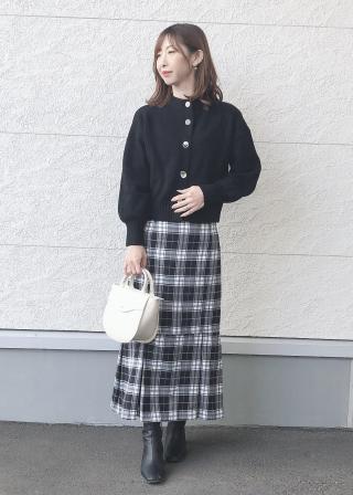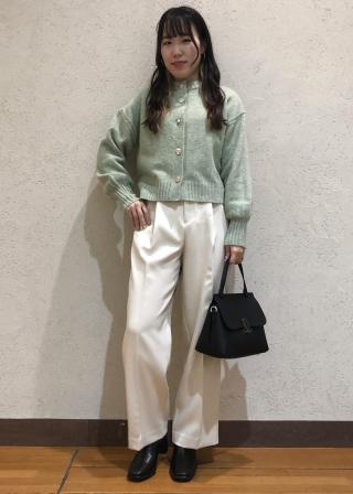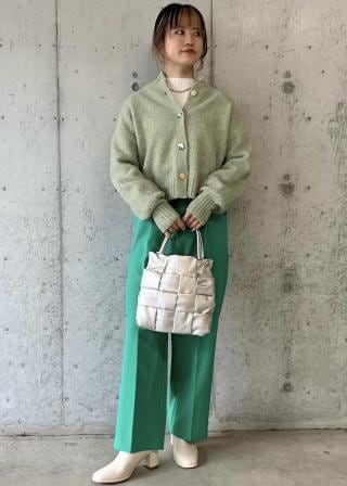 短めの丈で、ハイウエストのボトムとも好相性のカーディガン。