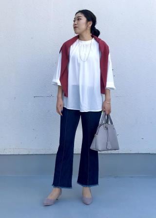 羽織としてはもちろん、ボタンを閉めてトップスとしても◎です。