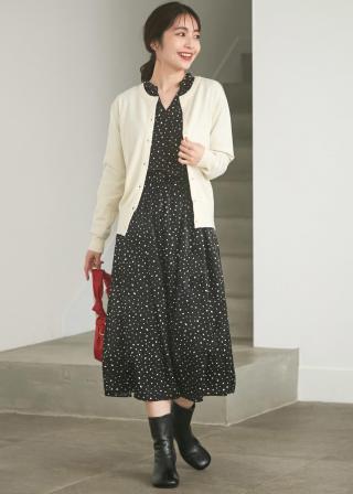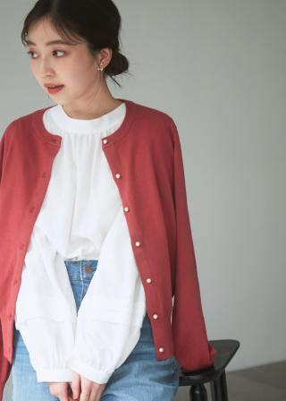 さらっと羽織っても、ボタンを閉じてトップス風に着てもOKな定番クルーネックカーディガン。