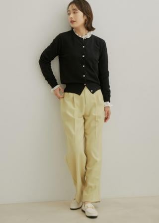 さらっと羽織っても、ボタンを閉じてトップス風に着てもOKな定番クルーネックカーディガン。